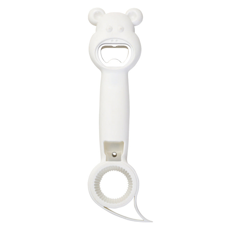 4 in 1 bottle opener, can opener, lid cap opener. It is a multifunctional jar opener, protect your nails! It is divided into two sides, each with its purpose to meet your multiple needs.