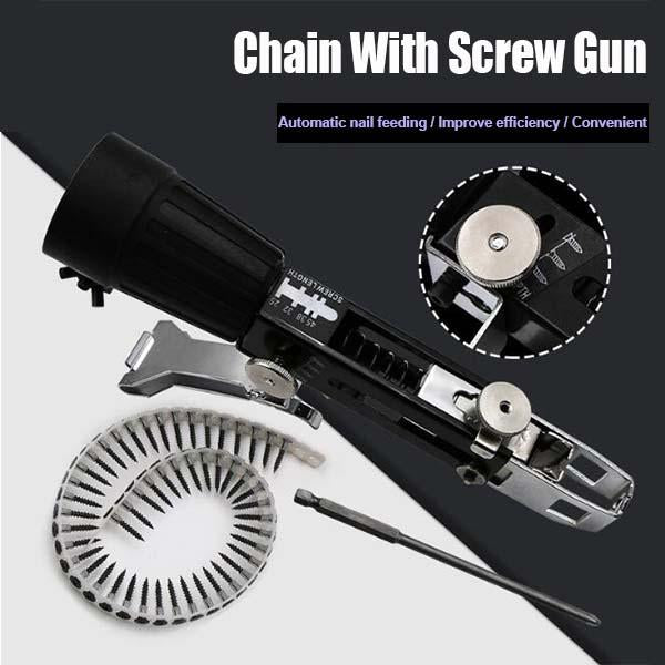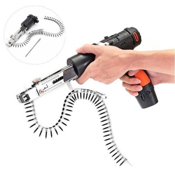 ☀ APPLICATION: The product is suitable for a nail gun or electric drill. Automatic chain nail gun adapter screw gun for electric drill woodworking tools.