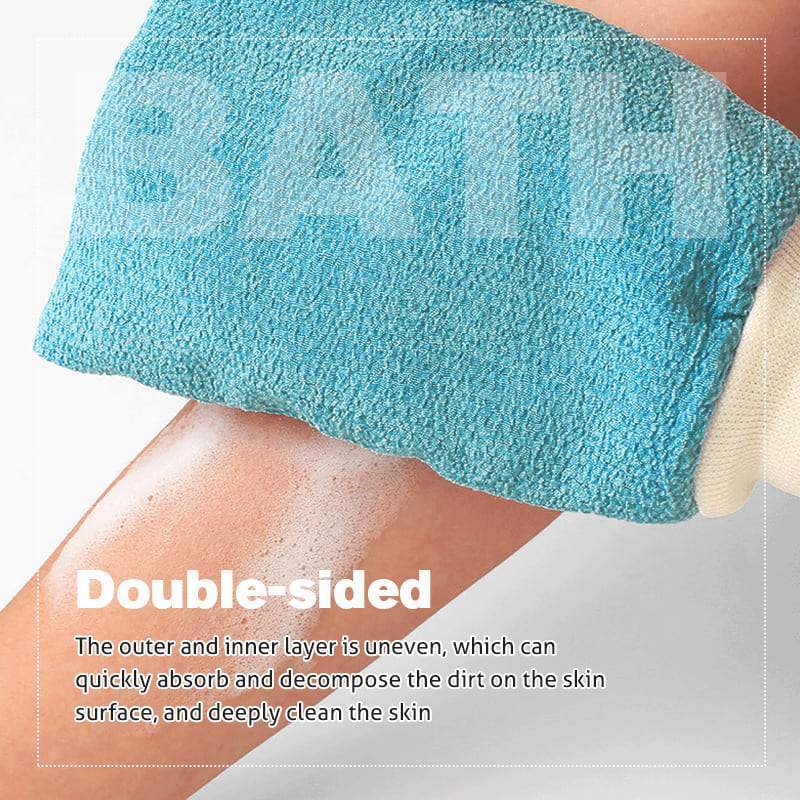 [QUICKLY CLEANING & SMOOTHING] After taking a hot shower or sauna or soak for 5-10 minutes, using the soap for your full body and wash away the foam and oil. Then working the bath mitt over your body through circulating motions until scrub away dead skin cells, dirt, excess oil buildup, and impurities.