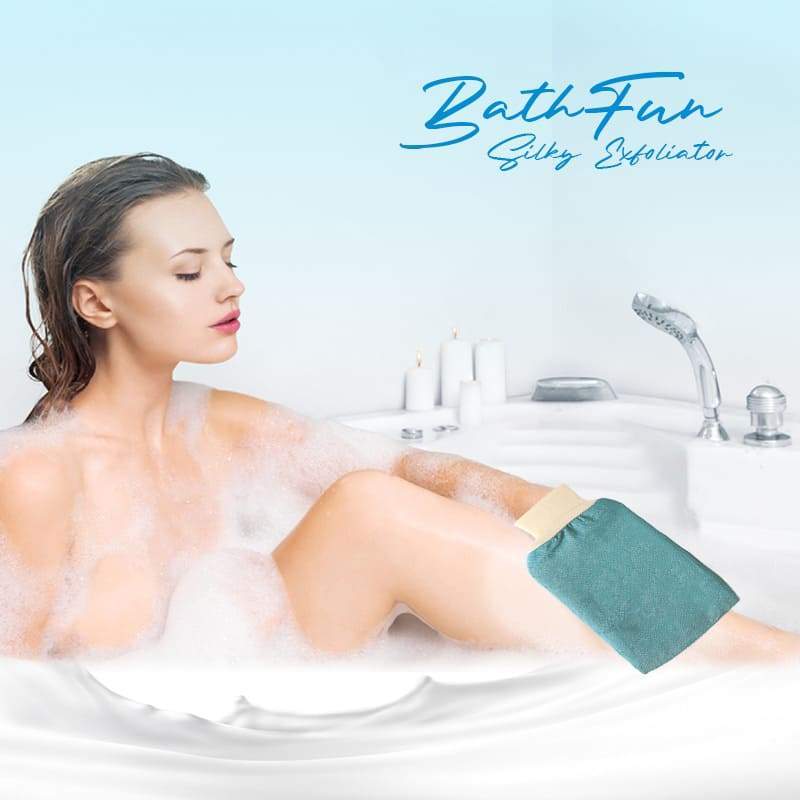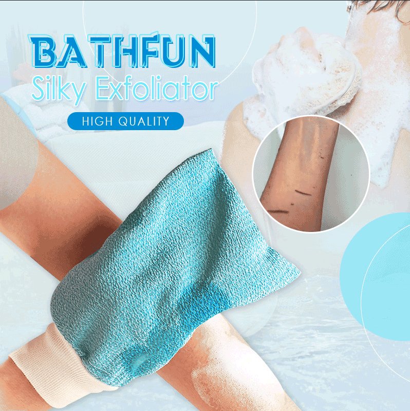 [DOUBLE SIDED DESIGN] Our BathFun Silky Exfoliator is made of thick fabric, it’s a rough exfoliating material that helps to exfoliate away dead skins. With a soft towel-lined interior that you could match the soap making your skin softer.