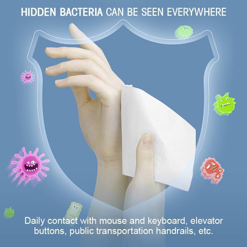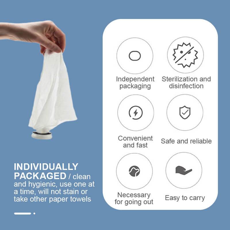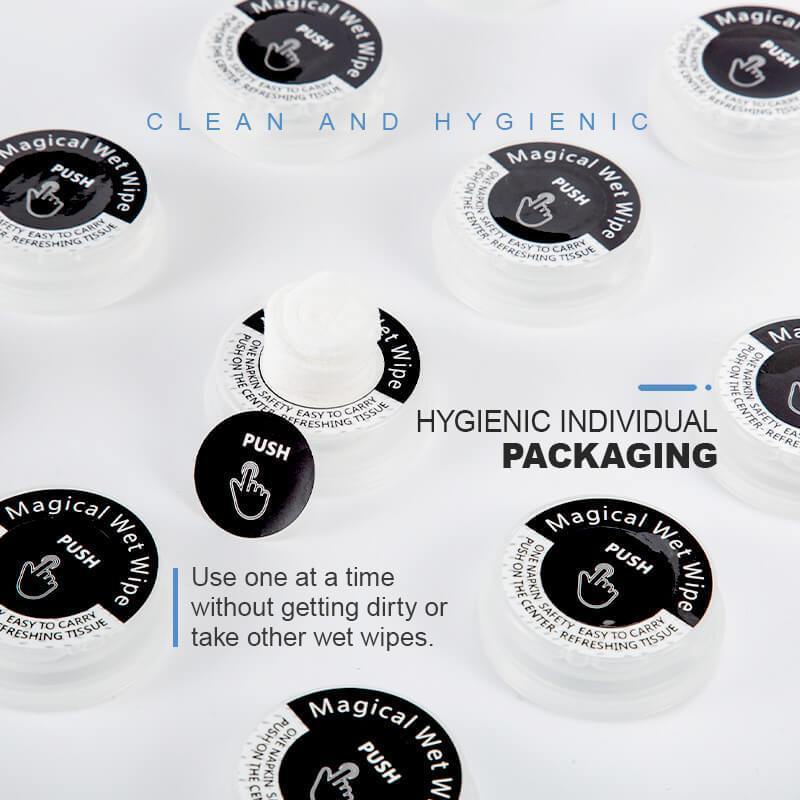- This Disposable Portable Press-On Disinfectant Wipes(10 pcs/box) are compact, portable and can be used at any time to effectively inhibit germs and to clean and disinfect yourself in public places such as playing/working.