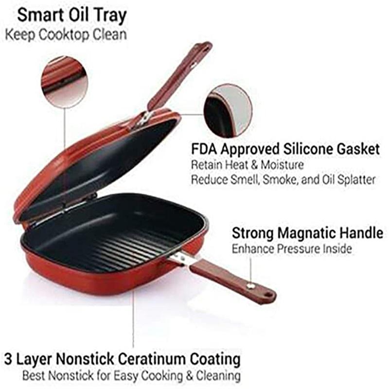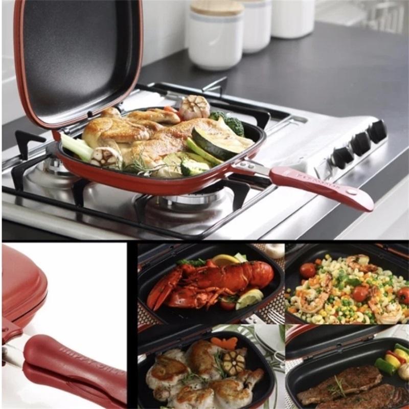 - The double-sided frying pan is very convenient to use, clean and hygienic, and there is no oil smoke or oil splash on the grilled food.