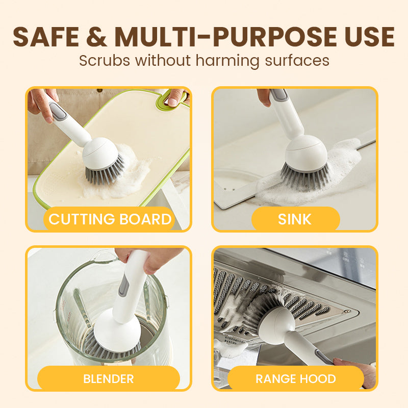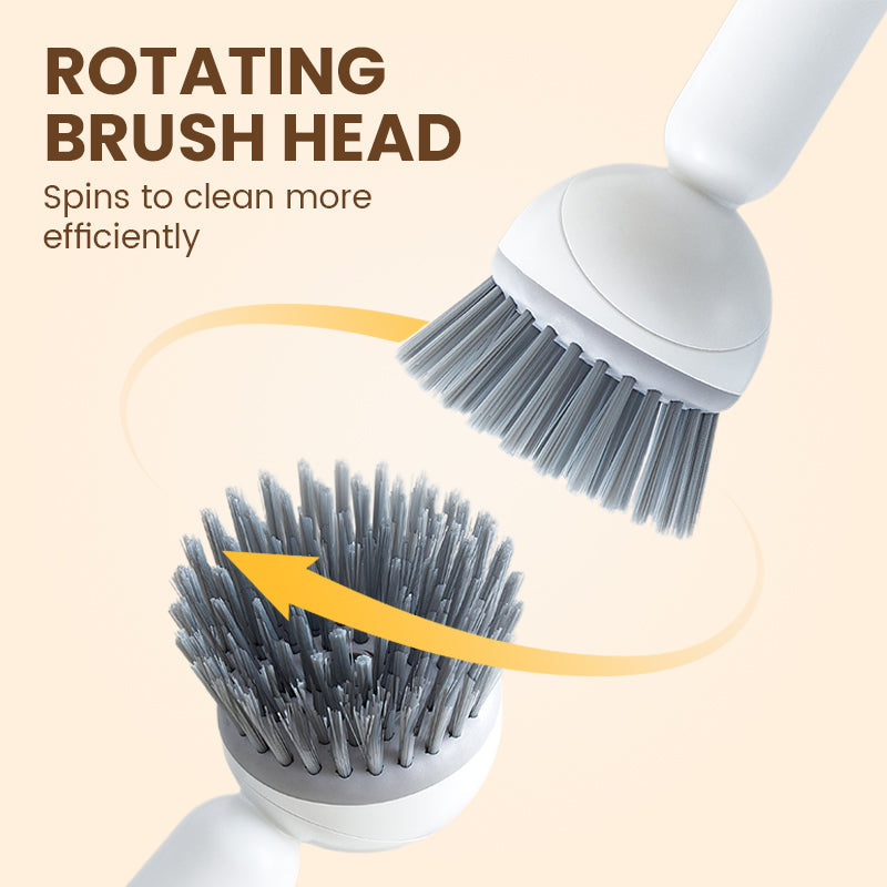 ROTATING BRUSH HEAD – Effortlessly boosts cleaning performance. The 360° rotating brush head ensures that every angle of your dishes and cookware is thoroughly cleaned without applying unnecessary pressure. Designed for efficient cleaning with minimal effort, the rotating motion lifts dirt and grease faster than fixed brushes, making daily kitchen tasks quicker and easier.