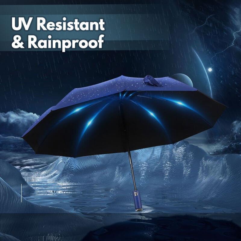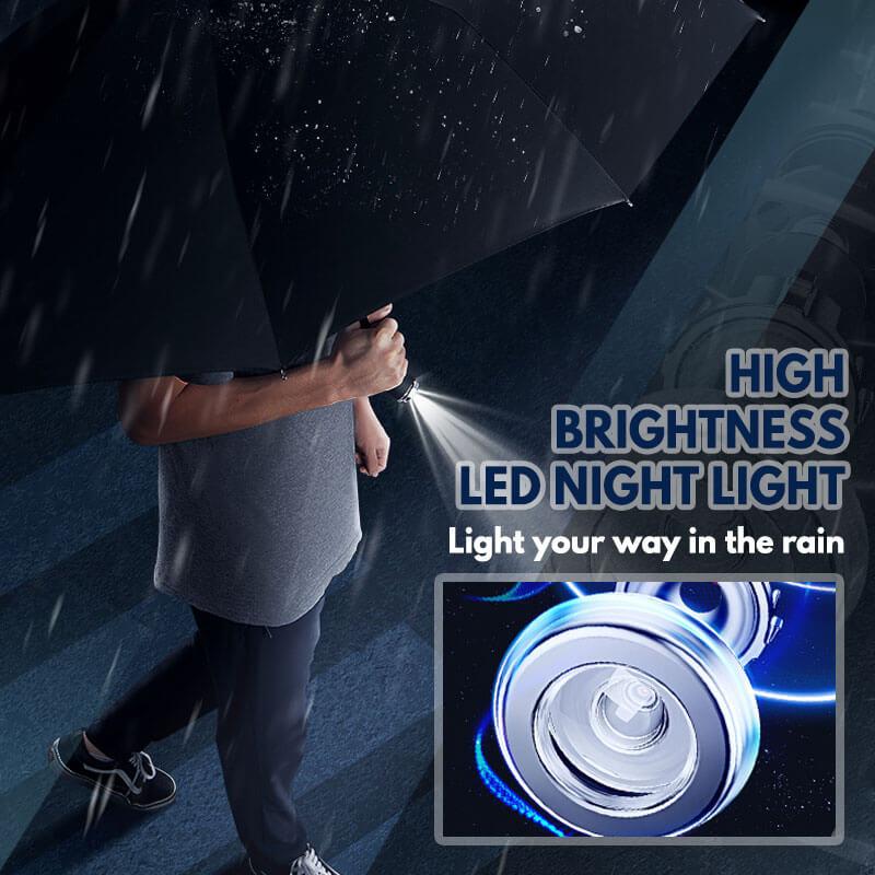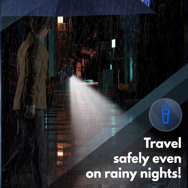 - Are you still afraid to walk on a rainy night? Windproof LED Sun & Rain Umbrella with safety upgrade and high-intensity night light illumination to keep away from all dangerous situations.