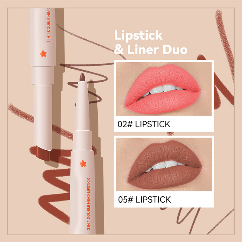 Long-Lasting Double Head Lipstick & Lip Liner