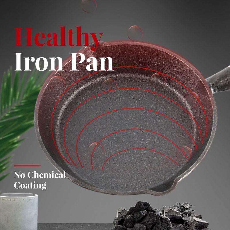 Special casting iron pores on the surface of cast iron pan can absorb oil and form a healthy protective layer, which makes the pan nonstick and less oil smoke.