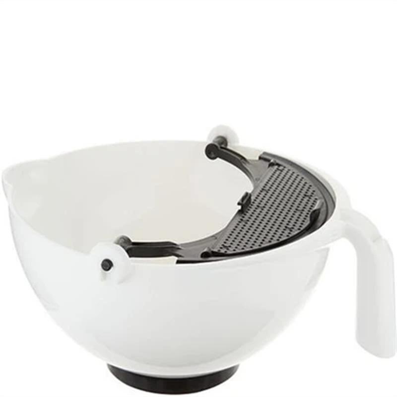 Why just use a plain mixing bowl, when the Bowl can do so much more! The pour spout works well with the attached colander feature, plus you can easily scrape ingredients from the bottom of the bowl with the built-in spatula.