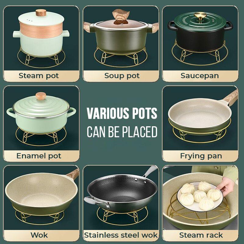 It can be a pot rack that holds the freshly cooked pot and isolates it from the desktop, keeping the kitchen sink and counter tops safe from scratches from pots and dishes