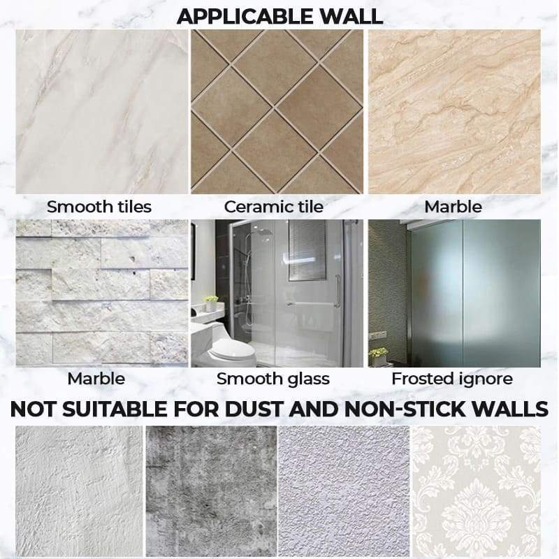 • [Widely Used] Widely installed in the kitchen, bathroom, and bedroom. Work on smooth/non-smooth tiles, marble, and glass, frosted glass surfaces. (Note: Do not use on cement walls, plaster walls, and wallpaper)