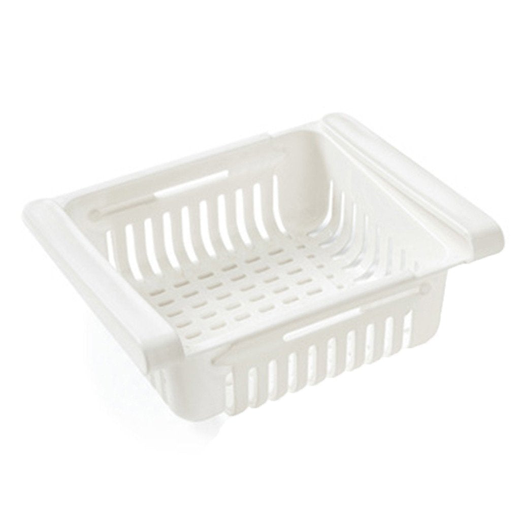 Create and maximize shelf space with this smart design refrigerator drawer. It is ideal for organizing your refrigerator, kitchen pantry, closet, and garage. Easy to install and no tools required. Fits most shelves using adjustable rails and hooks.