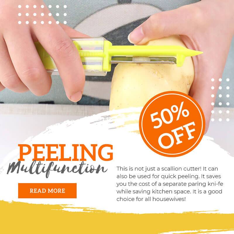 This is not just a scallion cutter! It can also be used for quick peeling. It saves you the cost of a separate paring kni-fe while saving kitchen space. It is a good choice for all housewives!