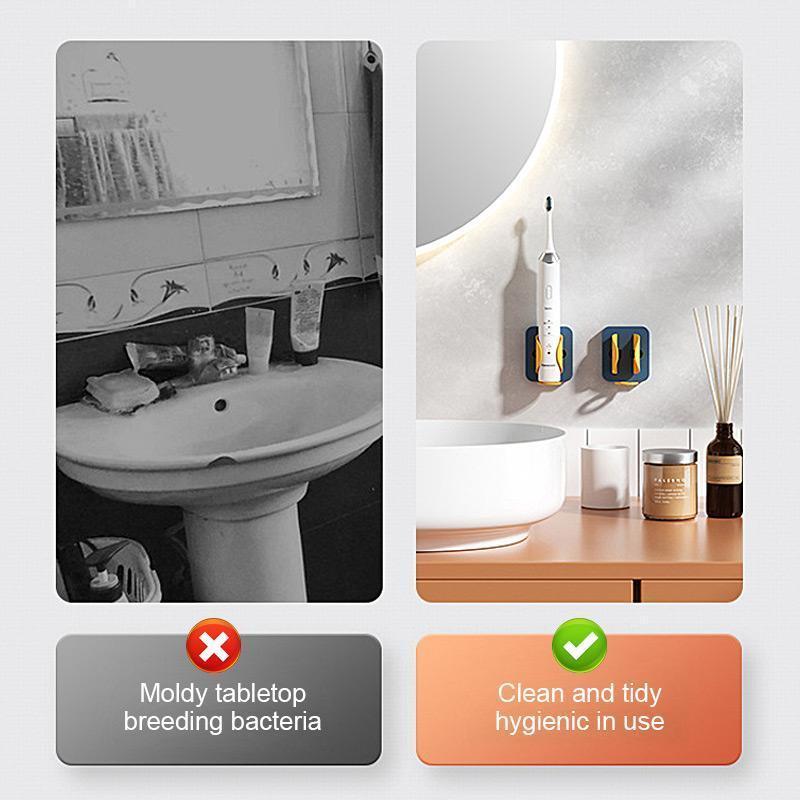 The bracket is small and convenient, and it can be installed directly on the wall. You can store the toothbrush directly on the holder, which saves space and keeps the bathroom and vanity clean and tidy. -
