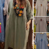 💃Women's Casual Loose Round Neck Solid Color Dress with 3/4 Sleeves & Pockets