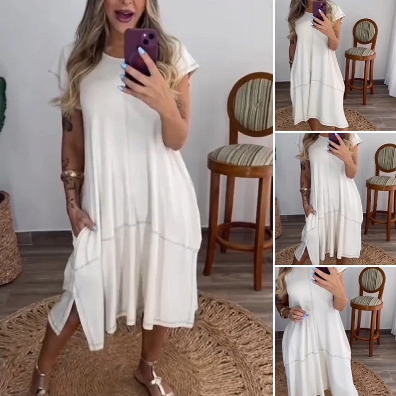 TIMELESS VERSATILITY – Whether you're enjoying a sunny day or heading out for errands, this dress adapts to every occasion with its simple, flattering design.