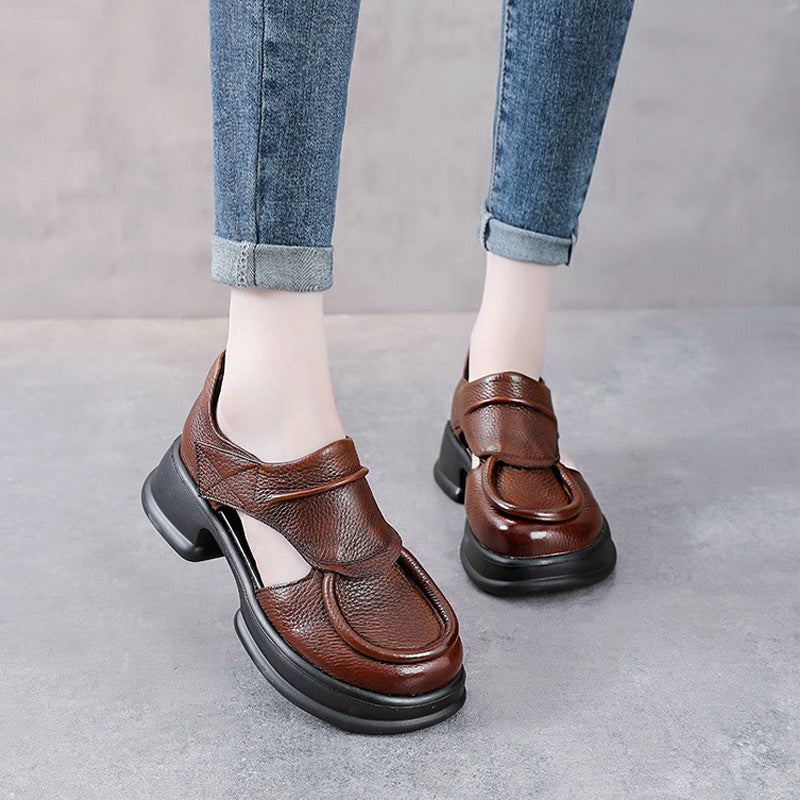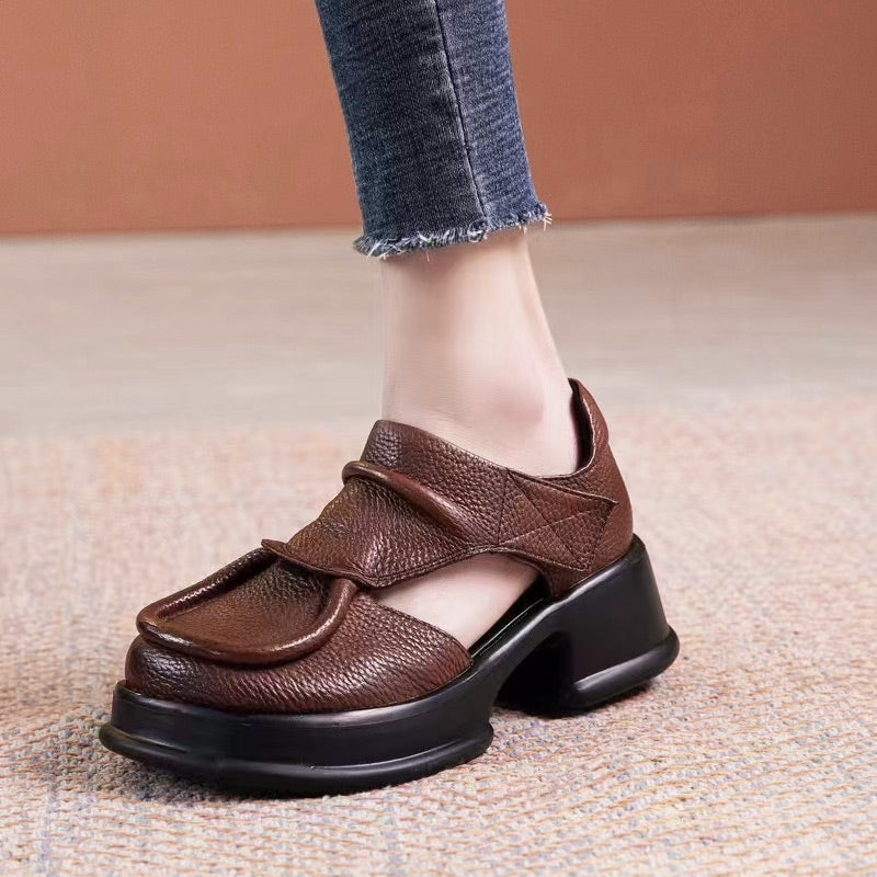 Women'S Thick Sole Hollow High Heeled Sandals With Velcro