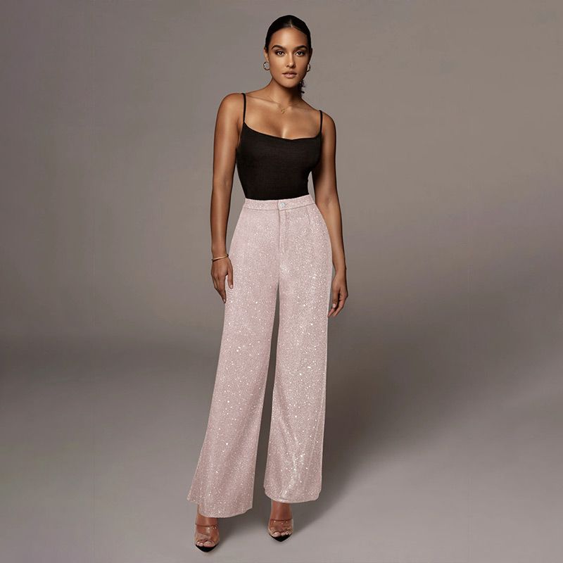 These pants are made from high-quality fabric that is both comfortable and durable. The fabric is lightweight and breathable, making it perfect for any season. The wide-leg design gives you a relaxed feel while still being stylish and fashionable. The sparkling sequins add a touch of glamour and elegance to your outfit.
